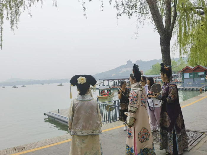 图为身着古装的游客在颐和园打卡。