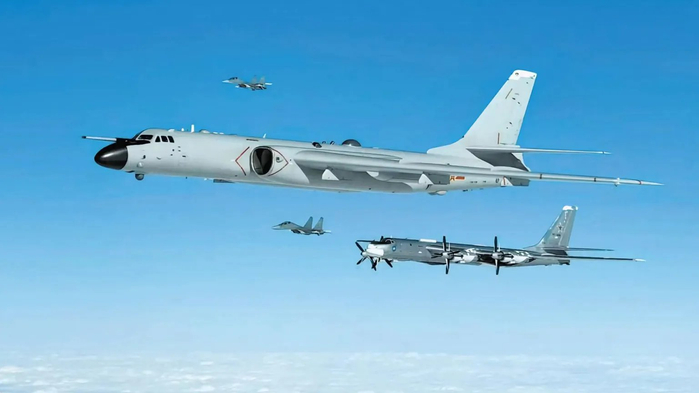 还是轰-6N和图-95同框,由歼-16护航的这张照片过瘾呐。历史告诉我们,小日子最怕的就是轰炸机。