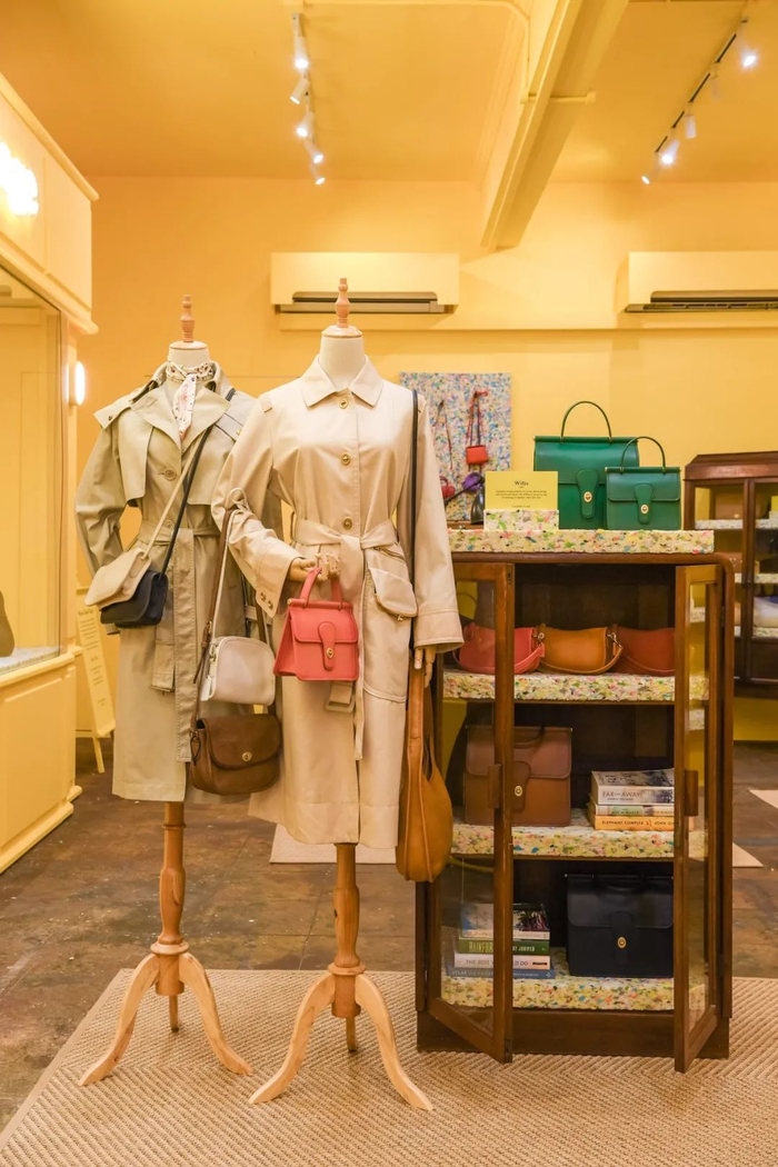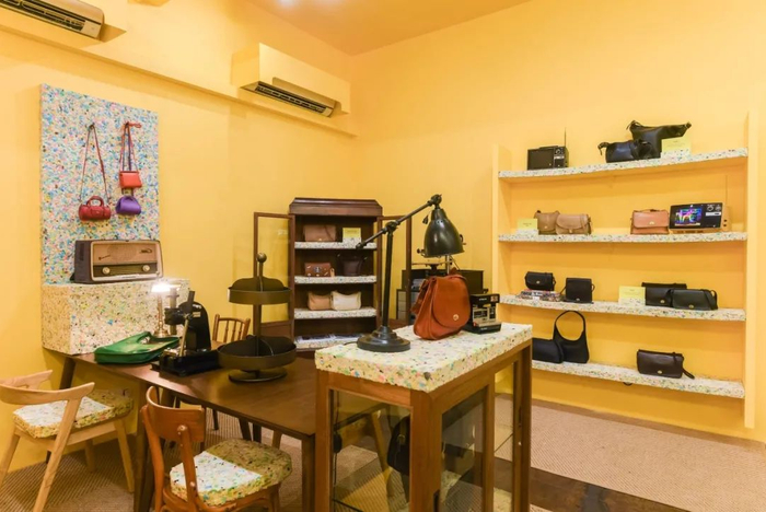 Kopitiam 风格的木椅、古老的衣架和展示柜,各种风格的 Coach 包等都增添了空间的怀旧氛围;