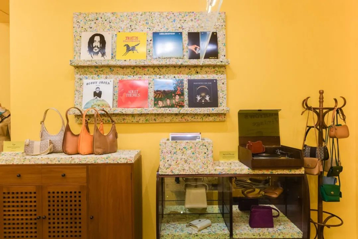 店铺内展示售卖多款限量及独家vintage商品,包括包袋、风衣等,该品牌的翻新包也可供购买,如限量系列的复古Coach Originals 和 “Coach(Re)Loved”手袋,1990 年经典款 Court 包和 1994 年 Prairie 包等以往款式也在整个快闪期间翻新发售。在包袋旁边的一台老式电视上向消费者展示修复专家对包袋的修复过程。