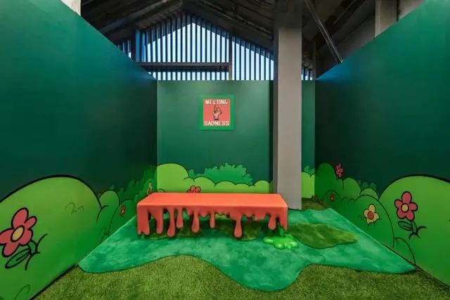 本次 Randomevent 限时快闪以成都特色的茶铺文化为灵感,一层是独具天府特色的龙门阵茶馆,有座、有茶、有麻将,安逸得称心如意;店铺二层则是由艺术家张权主理品牌 MeltingSadness 打造的秘密花园,打开融化的穿梭门,有竹、有辣、有小花,聚集可爱能量。