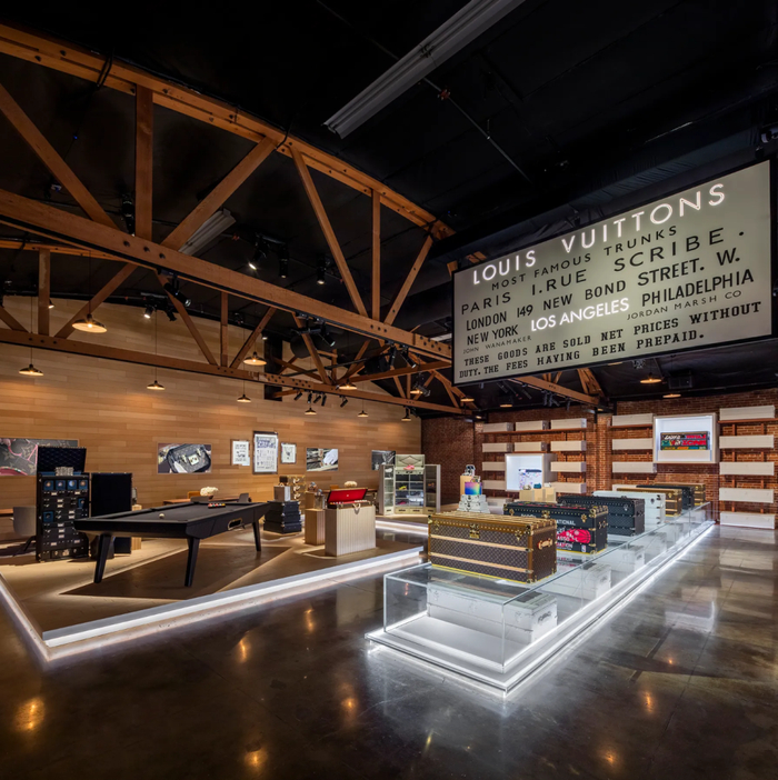 案例浅析:在此次LA快闪店的设计中,LOUIS VUITTON 将法国基因中自带的优雅与精致融入至场景打造,通过穿越百年的经典“行李箱”元素以及通过法国工坊场景的重现,进一步传递品牌的工匠精神。