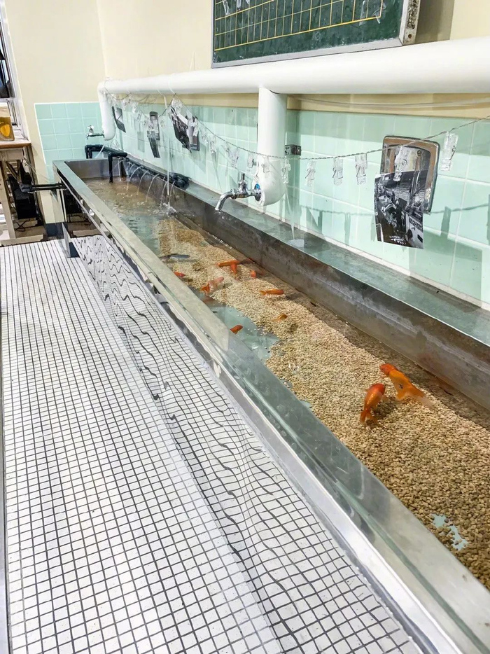 这间水族馆之所出名,就在于他是在保留学校全部设施的基础上,“微调”出的水族馆。