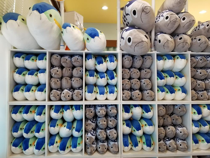 为了赚钱养活这些小动物,水族馆也售卖一些可爱的周边产品,比如“生无可恋”的小鱼玩偶。