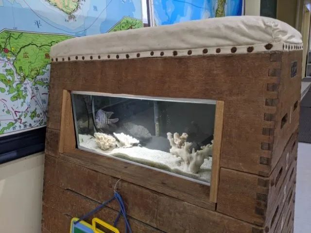甚至于体育课上用的跳箱都变成了海洋生物的展示柜与饲养池。