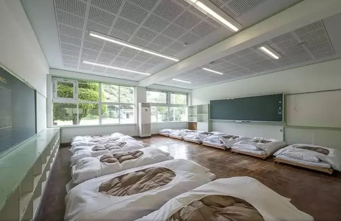 从外观上,这间旅馆和一般学校没有什么差别,进入里面,熟悉的鞋柜,以及各种日剧、动漫里面熟悉的学校场景,都会让人误以为这就是一间学校。