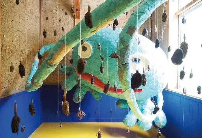 两层校舍的每一个房间,都放置了艺术家的创意装置,诉说一个个绘本故事。这里让孩子们的想象跳进现实,可怕又可爱的怪物成为了具象的实体,让人们在在现实与虚拟中来回跳跃与回神。