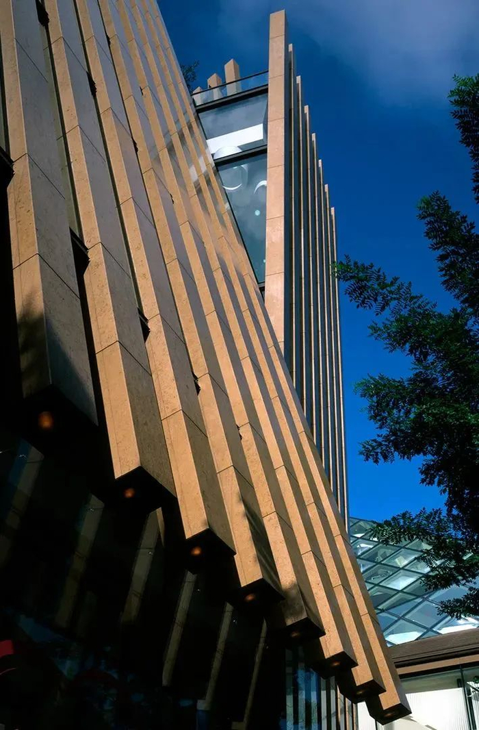 建筑分为两部分,由石灰石面板组成的主楼,以及一栋全玻璃幕墙制成的角楼组成。两种语汇的组合,展现了其强大的昭示性及存在感。