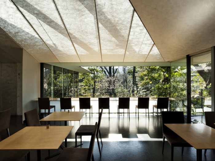 根津美术馆应该是表参道上气质最“日本”的建筑,作为日本为数不多的私立美术馆,隈研吾运用他最喜欢的材料——柱子,结合多个错落的大屋顶,通过现代技术,表达了其对现代主义中东方意境的理解。