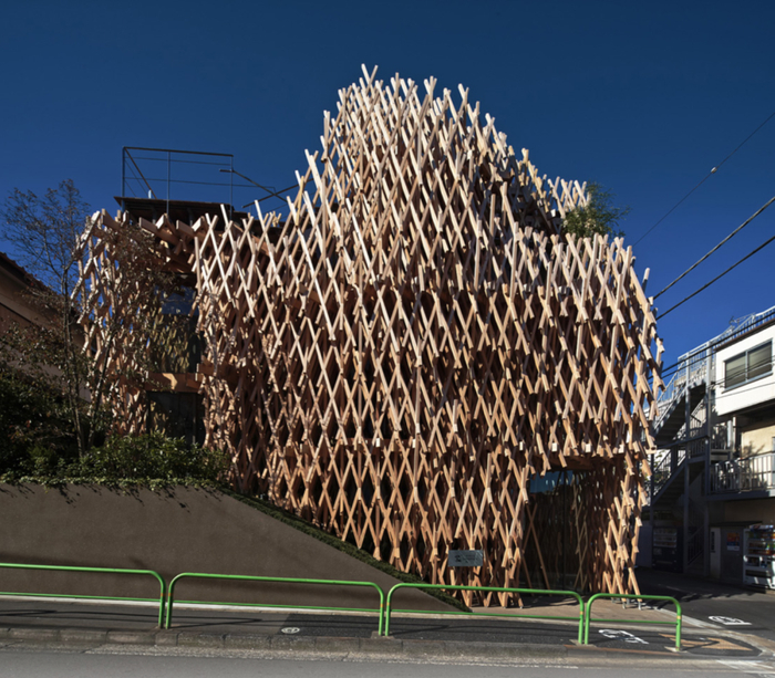 隈研吾通过木构件的“魔鬼”组合,创造出了像森林一样的云彩般的强大却柔软的建筑,探索了与使用玻璃和混凝土的商业建筑不同的可能性。