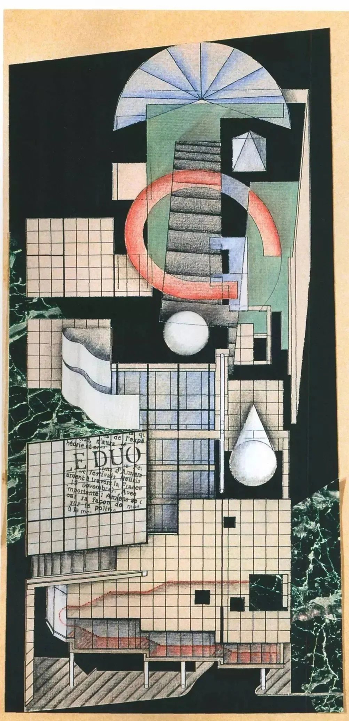 槙文彦作为日本现代主义建筑大师,新陈代谢派的创始人之一,螺旋体大厦集中体现了其建筑与几何、几何与自然的关系。通过两张建筑的“拼贴”图,表现了槙文彦对于现代主义及东方文化的理解。