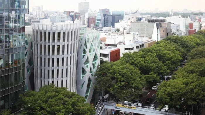 在2000年代的表参道上,很多建筑被批评这是只有漂亮“表皮”包裹的混凝土盒子。MVRDV为了打破这一点,利用体块的错层交错来创造出丰富的露台空间,通过空间的变化来打破建筑形体。