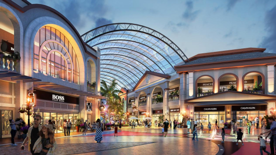 奥莱建筑:开放式街区+垂直主题分布,玻璃幕墙与自然采光结合。