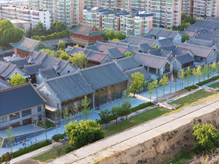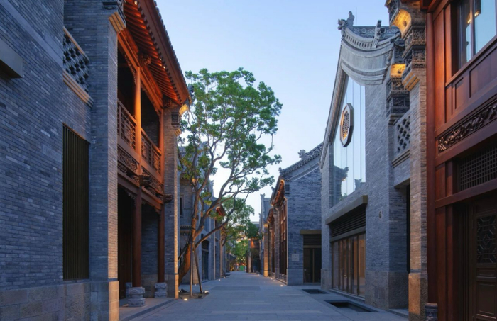 在守正方面,通过实地调研中原传统民居,提炼“街、巷、院”的空间格局,15个主题院落错落分布,重现“出则繁华、入则静雅”的中式居住美学;