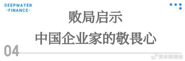 近十年来,中国民营企业家以飞蛾扑火似的牺牲,为后辈企业家充当反面教材。他们起于草莽,崇尚大开大合和经验主义,这种普遍存在暴发户心态,让他们对于宏观周期和经济规律并不是非常重视,在顺周期中可以赚得盆满钵满,但是一旦遭遇从未经历过的市场下滑,便立刻轰然倒塌。
