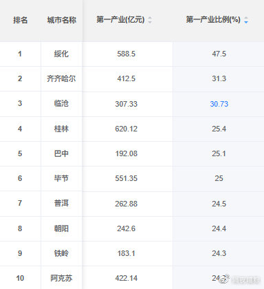 第一产业是指农、林、牧、渔等传统农业部门,占比的高低反映了一个城市农业经济的重要程度。本文将就这些城市的第一产业占比进行分析,以了解其经济结构和发展动向。