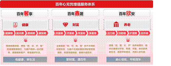 2024年,百年人寿启动以客户为中心服务升级,围绕健康、财富、养老三大核心需求,搭建全生命周期“心无忧”增值服务体系,并推出 “百年馨享”(健康无忧)、“百年鑫晟”(财富无忧)、“百年欣安”(养老无忧)三大子品牌,用心为客户打造无忧生活。