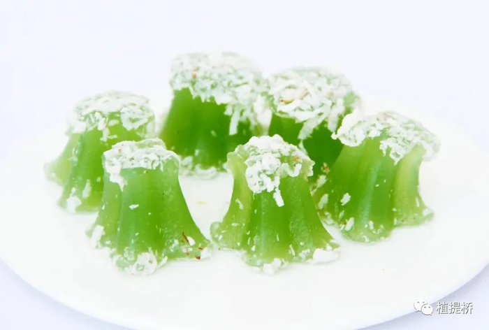 目前只有在海南能品尝到这种“绿色”美食,如斑兰糕点、面条等食品。这也源于中国热带农业科学院香料饮料研究所对斑兰叶作物的推广。