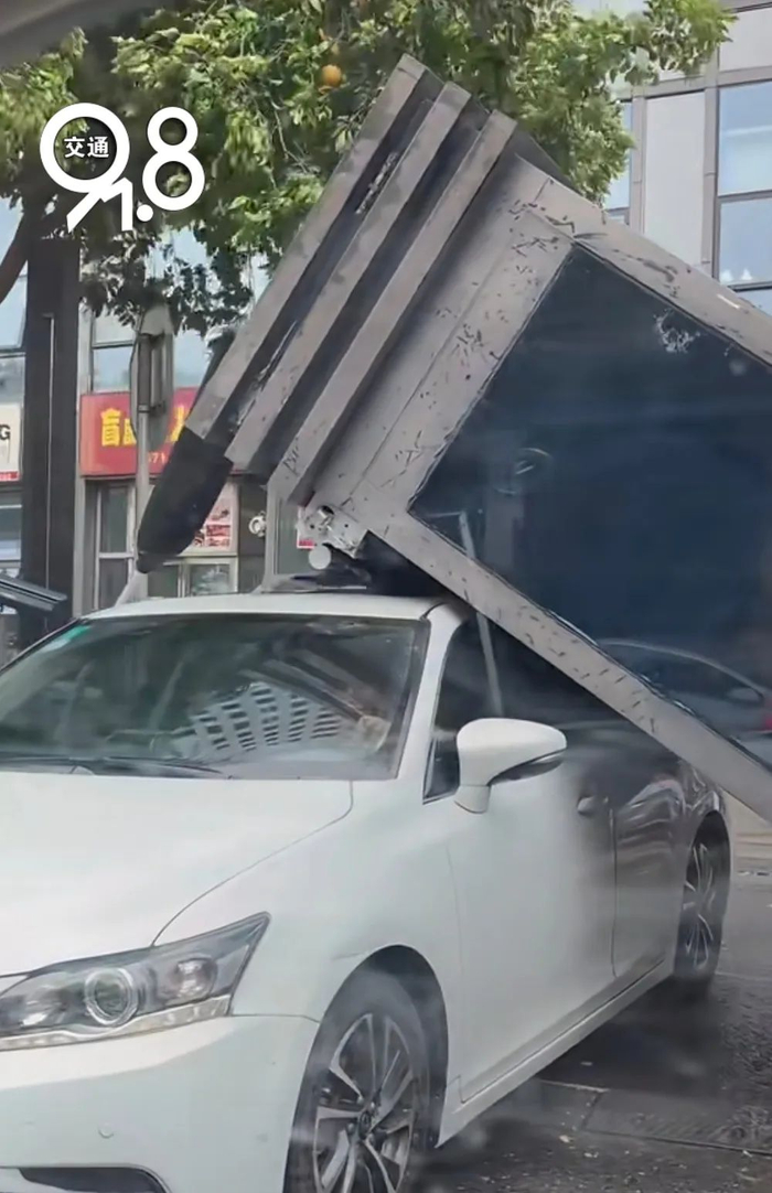 广告牌倒塌…摔得粉碎!