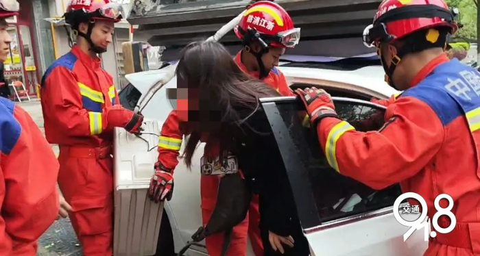 据李鑫介绍,事发时被压在下方的白色车辆主驾驶座上有一位女性在车内,“消防人员到场后先将车内这位女性安全救出,再将倒塌的保安岗亭挪到了安全位置。”