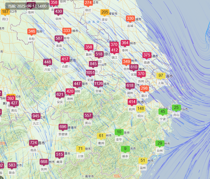 受上游污染物输送影响,今天中午起杭城出现浮尘天气,今天12时以后PM10浓度明显上升,空气质量逐渐爆表,至14时PM10浓度已超过400ug/m3,达到严重污染的级别。
