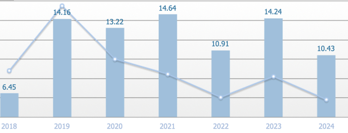 2024年,受金融机构科技投入负增长等影响,恒生电子迎来2019年以来最差业绩,净利润下降26.75%,扣非净利润更是下降42.39%。公司员工减少2262人,比例高达17.2%,据称今年还将继续优化。