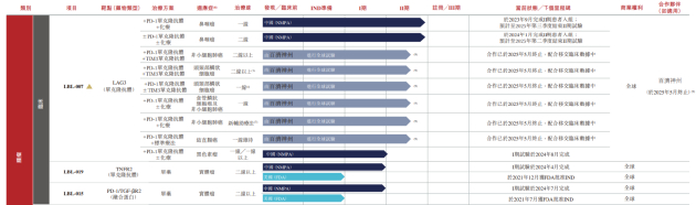其他产品方面,LBL-007为公司研发进度第二的在研管线,招股书资料显示,LBL-007在全球处于临床阶段的LAG3靶向单克隆抗体中临床进度位居前三。与LBL-024类似,LBL-007的商业化前景同样并不乐观,在鼻咽癌领域,目前一线乃至多线治疗均有多款PD-1/PD-L1单抗作为标准疗法获批,市场竞争激烈。