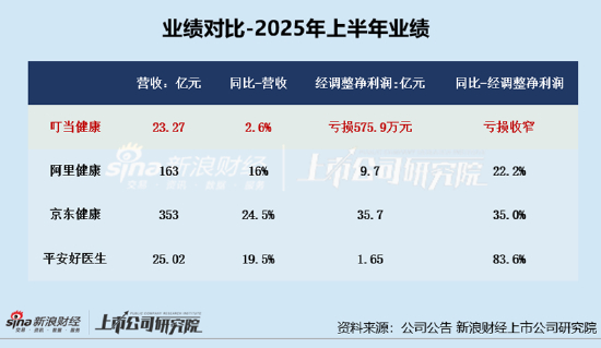 从业绩上来看,叮当健康在京东健康、阿里健康、平安好医生四家上市互联网医疗平台的业绩对比中黯然失色。2025年上半年的业绩数据显示,叮当健康营收23.27亿元,股东应占亏损5167万元,尽管亏损有所收窄,但其营收规模与盈利能力均远远落后于另外三家平台。2018-2024年及2025年上半年,叮当健康亏损规模超60亿元。