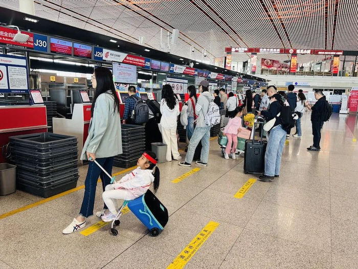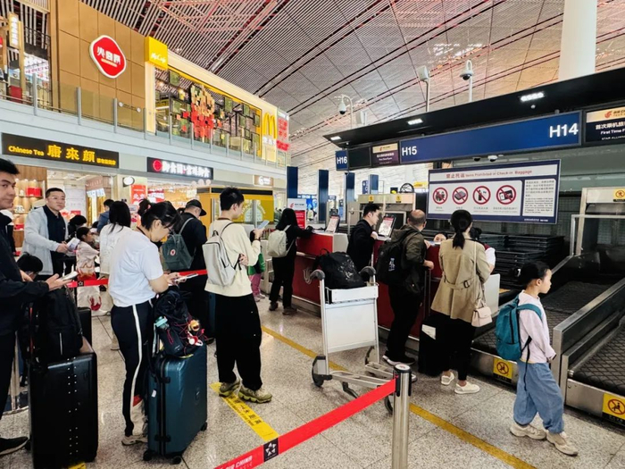 国航地面服务部旅客服务中心旅客服务主管刘娟提示旅客,假期旅客出行热度高,国航加大保障力度,在严格落实各项安全保障措施的前提下,优化现场服务举措。因为假期出行客流量大,建议大家合理安排出行时间,国内航班提前2小时,国际航班提前3小时到达机场,通过官方渠道关注航班动态以及出发地各机场的航班截柜时间。首乘旅客人数增多是节假日出港的特点之一,国航在T3航站楼设置首乘旅客专属服务柜台H14和H15,并由值机员为旅客提供专属引导服务,增加外围巡视频次,以确保及时辨识首乘旅客提供精准服务。
