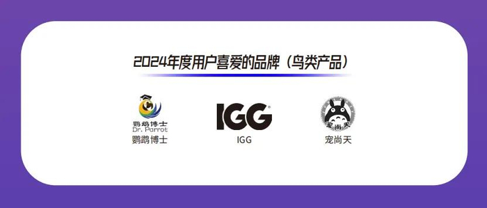 在2024年度“用户喜爱的品牌(鸟类)”评选中,鹦鹉博士、IGG、宠尚天三个品牌斩获该奖项。