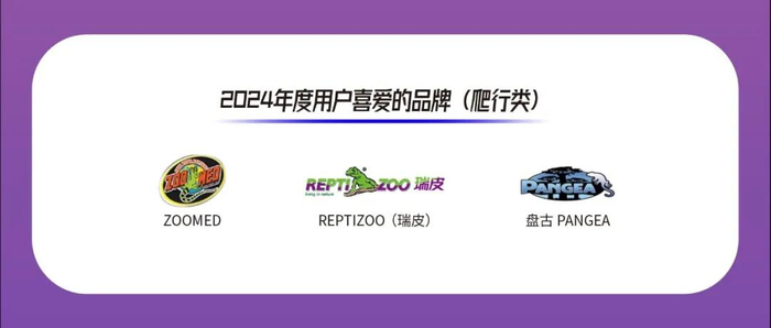 在2024年度“用户喜爱的品牌(爬行类)”评选中,ZOOMED、REPTIZOO瑞皮、盘古PANGEA三个品牌斩获该奖项。