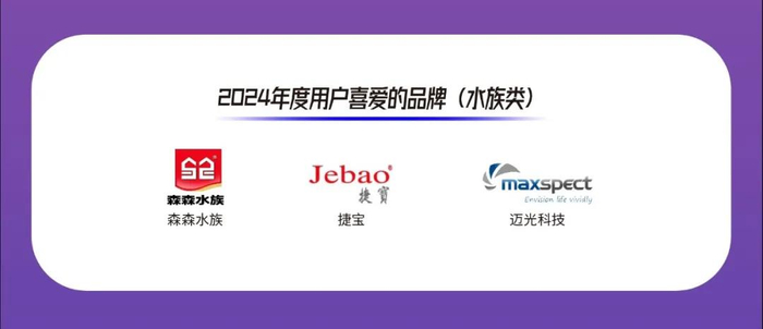 在2024年度“用户喜爱的品牌(水族类)”评选中,森森水族、捷宝、迈光科技三个品牌斩获该奖项。