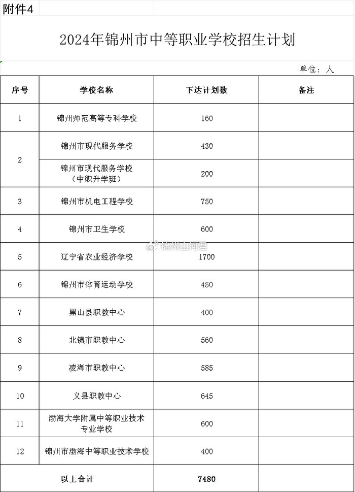 4.2024年锦州市中等职业学校招生计划