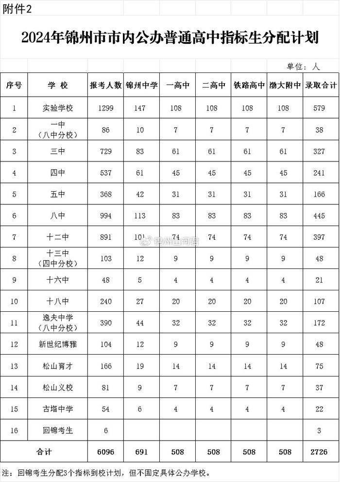 2.2024年锦州市市内公 办普通高中指标生分配计划