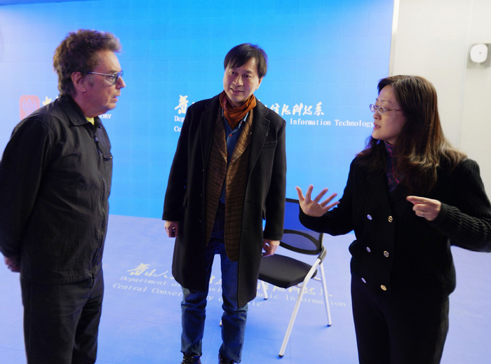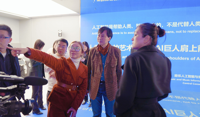 12月9日,国际知名演员巩俐和联合国教科文组织亲善大使、法国电子音乐大师让·米歇尔·雅尔携世界AI电影节团队参访中央音乐学院音乐人工智能与脑科学实验室。中央音乐学院音乐人工智能与音乐信息科技系主任李小兵、国际交流处处长陶倩等在实验室接待了来宾。