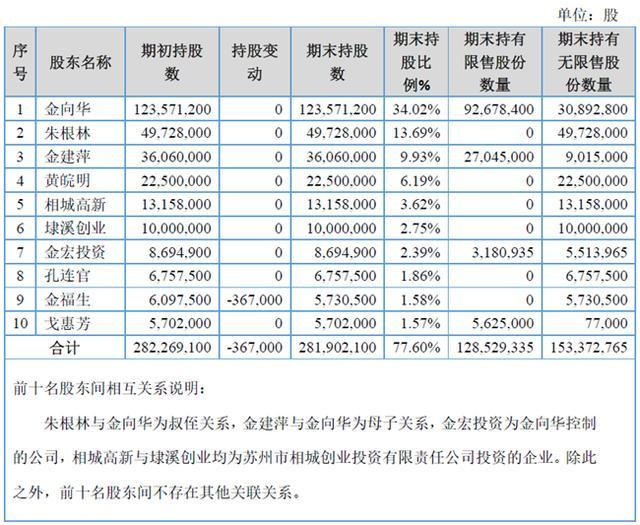 公司实际控制人为金向华、金建萍,金建萍与金向华为母子关系。金向华持有公司34.02%的股权,其控制的金宏投资持有公司2.39%的股权,金建萍持有公司9.93%的股权。金向华和金建萍合计控制公司46.34%的股权。