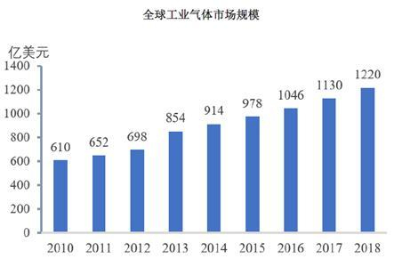 全球工业气体市场近年来呈现稳步增长的态势,2018 年全球工业气体市场规模约为1,220 亿美元。国际货币基金组织发布的《世界经济展望》报告表示,在活跃的金融市场以及制造业和贸易领域的周期性复苏的支持下,新兴市场和发展中经济体的经济活动将显著增强,中国和其他许多大宗商品进口国的经济增长预计保持强劲态势。根据业界经验数据,工业气体行业增速是全球GDP 增速的2.0-2.5 倍1,按照此数据,2018-2019 年全球工业气体增长率可按保守的8%增长率计算,到2019 年,全球工业气体市场规模可以达到1,318 美元,市场规模稳步扩大。