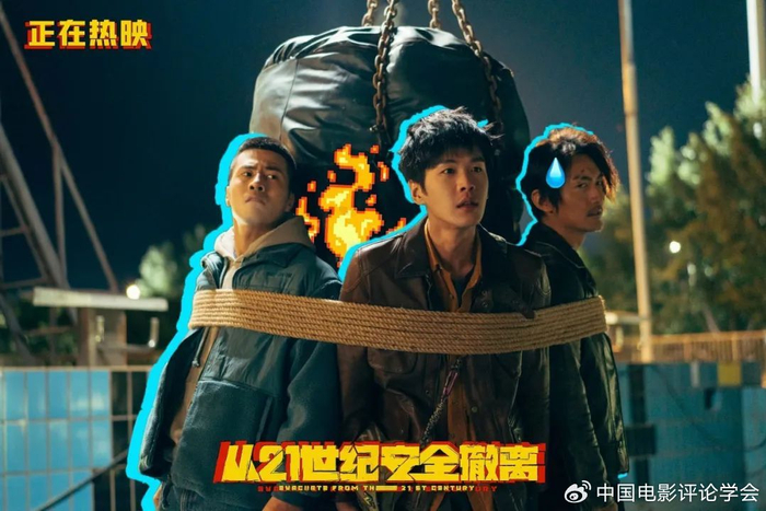 影片中,张若昀饰演的成年王炸具有平民英雄的理想化气质。他在未经擦拭干净的绿幕背景下,伴随着最假的肌肉PS特效说出最真切的人之愿望:找到并爱上自己的爱人,爱人也真的爱我;为我们的共同世界作战,让未来变好而不是变坏;成为英雄的道路上可能失败,甚至于一败涂地、体无完肤,然而只要有一线希望,就会坚持到底,不背叛自己,不遗弃初心。《从21世纪安全撤离》正是在这样的朴素信念表达中赢得了大量观众的情感共鸣和价值认同,毕竟没有哪个反派角色是天生的市侩小人,也没有谁会真的甘心庸庸碌碌过一生。