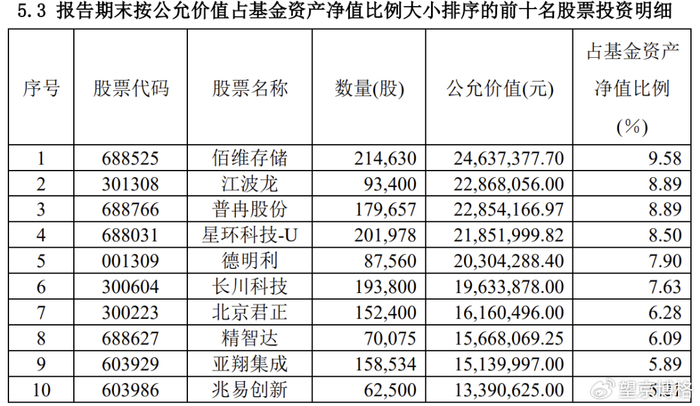 近一年回报为72.44%,从其(最新)四季报披露的前十大持仓来看,投资方向为存储产业链;