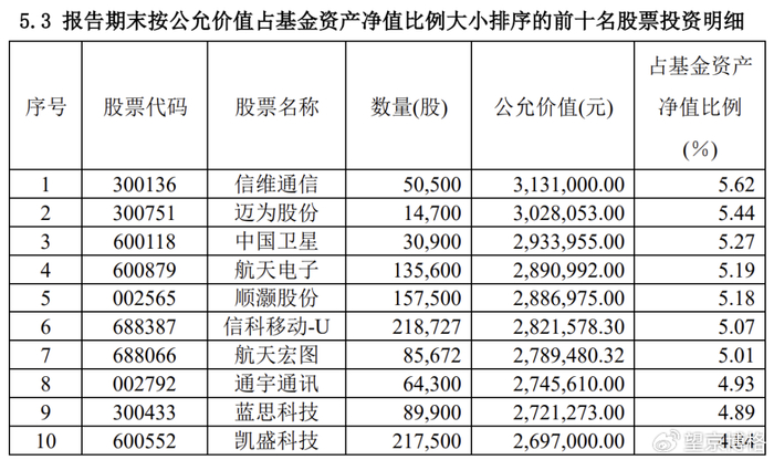 近一年回报为48.92%,从其(最新)四季报披露的前十大持仓来看,投资方向为商业航天产业链;