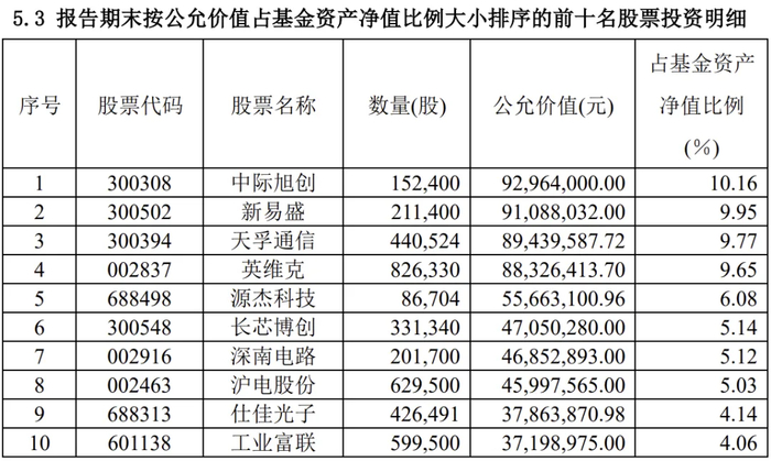 近一年回报为69.61%,从其(最新)四季报披露的前十大持仓来看,投资方向为海外算力链;