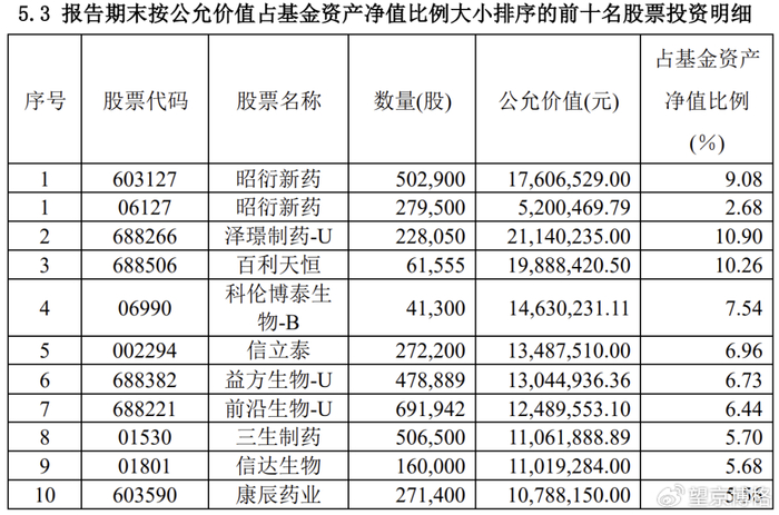 近一年回报为47.76%,从其(最新)四季报披露的前十大持仓来看,投资方向为创新药产业链;