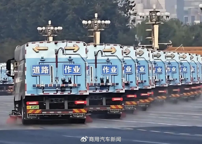 23辆比亚迪纯电动环卫车T18参与了正式受阅方阵前的路面环卫保障任务。它们以零排放、高效率的特点,出色地完成了路面清洁工作,向世界展现了中国新能源科技的硬实力与绿色担当,为阅兵式营造了整洁、干净的环境。