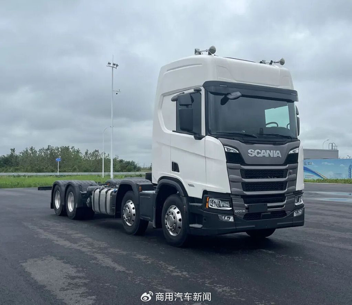 在本批次公告中,斯堪尼亚申报的一款总质量32000kg的四轴载货汽车底盘备受瞩目,这款前四后八载货车在动力方面搭载斯堪尼亚DC13220型号13升发动机,最大净功率可达368kW;车身尺寸与悬架设计上,车辆采用1990+3960+1350mm的轴距,第三轴、第四轴配备空气悬架,可有效提升车辆行驶的平稳性和舒适性,减少货物运输过程中的颠簸。钢板弹簧片数(前/后)有2/2/-和3/3/-两种选择,前轮距为2067/2067mm,后轮距为1830/1830mm。