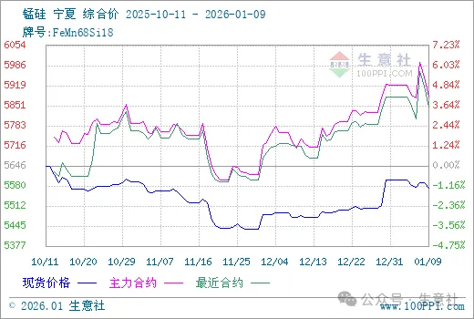 据不完全统计,截止到1.09,全国锰硅企业库存量382500吨,环比减11000。其中内蒙古64000吨,环比减1500吨;宁夏290500吨,环比减6000吨;广西8000吨,环比减1000吨;贵州5500吨,环比减1000吨;(山西、甘肃、陕西)10000吨,环比减1000吨;(四川、云南、重庆)4500吨,环比减500吨。