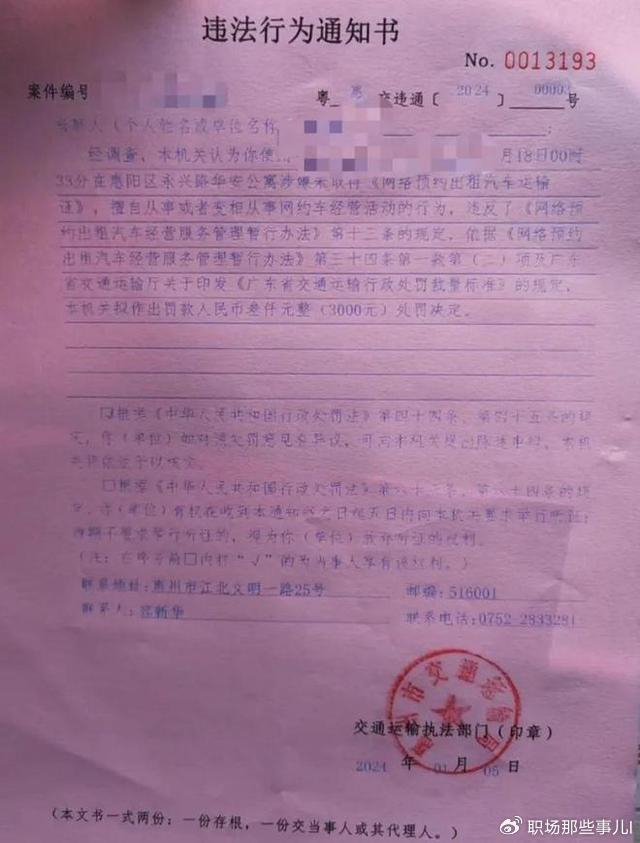 一喂顺风车车友群里有个惠州的司机在群里说,年底交警都在冲业绩,自己车子还没出车,罚单就寄到家里来了。罚款高达3000元,自己这一年算是白跑了。一大早就看见罚款单,自己一天的心情都变差了。