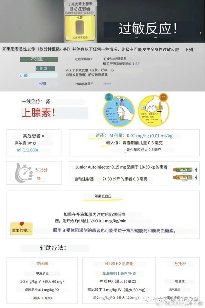 4.医务人员要懂得严重过敏反应的早期识别和规范处理,任何出现(皮疹,呼吸,循环,胃肠道)累及或者血压下降的,早期还是推荐在大腿外侧肌肉注射肾上腺素,简单高效,血药浓度也很高。反正要快狠准,这样才能避免悲剧发生。