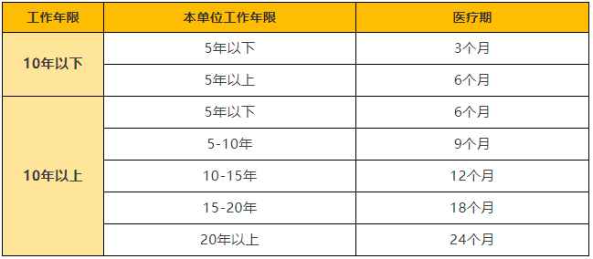 按照劳动者在本用人单位的工作年限设置。劳动者在本单位工作第1年,医疗期为3个月;以后工作每满1年,医疗期增加1个月,但不超过24个月。
