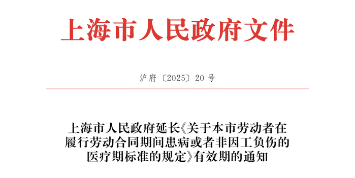 3月12日,上海市人民政府发布了《上海市人民政府延长有效期的通知》,明确医疗期规定有效期延长至2030年!