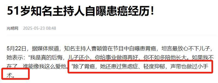 #51岁曹颖自曝患胃癌#